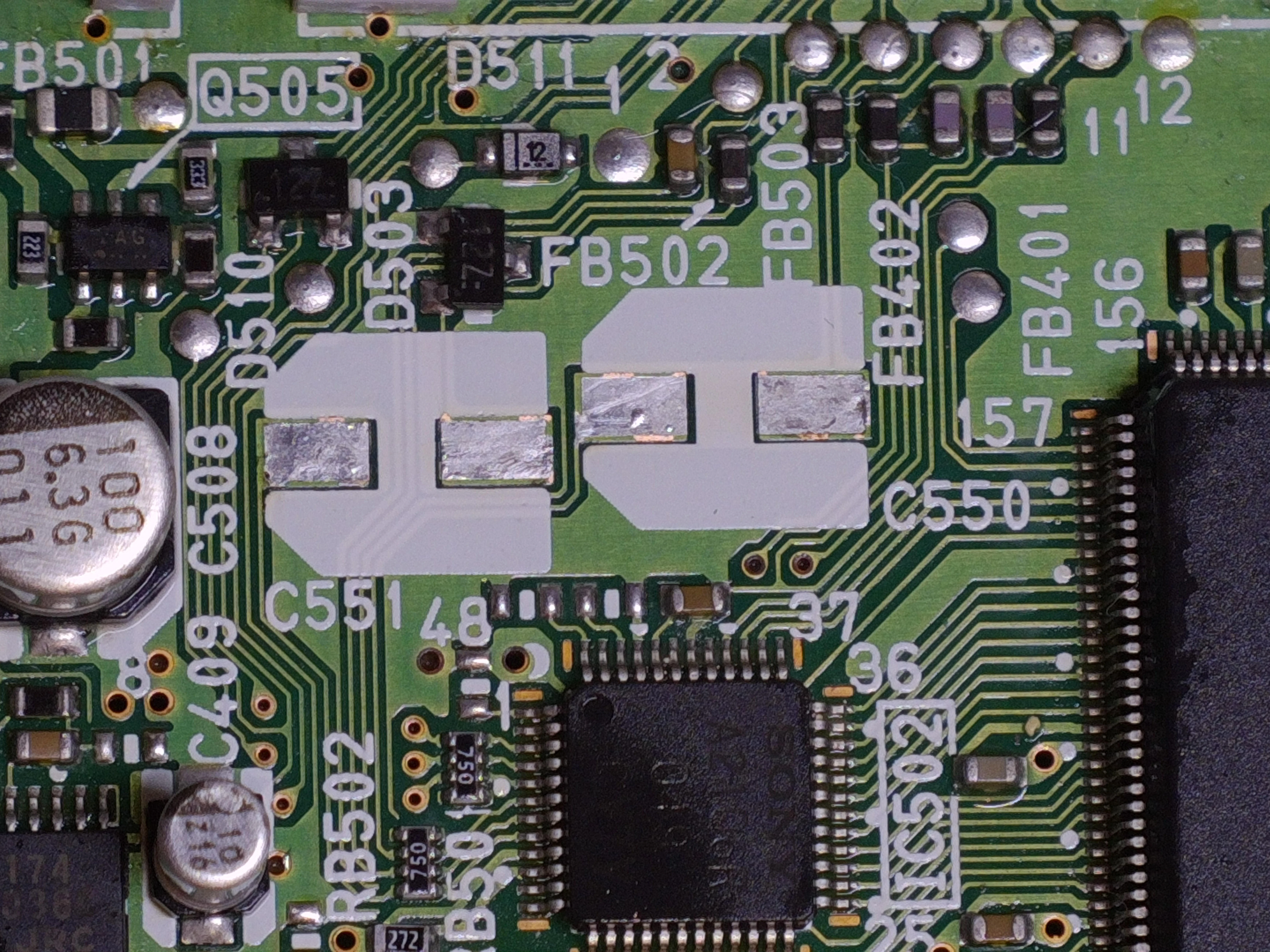 The PSOne video output problem is well known in the repair community. It often comes down to failed capacitors in the video circuitry. To fix the issue, capacitors C550 and C551 should be replaced. In the picture below, you can see what these capacitors looked like in my PSOne.