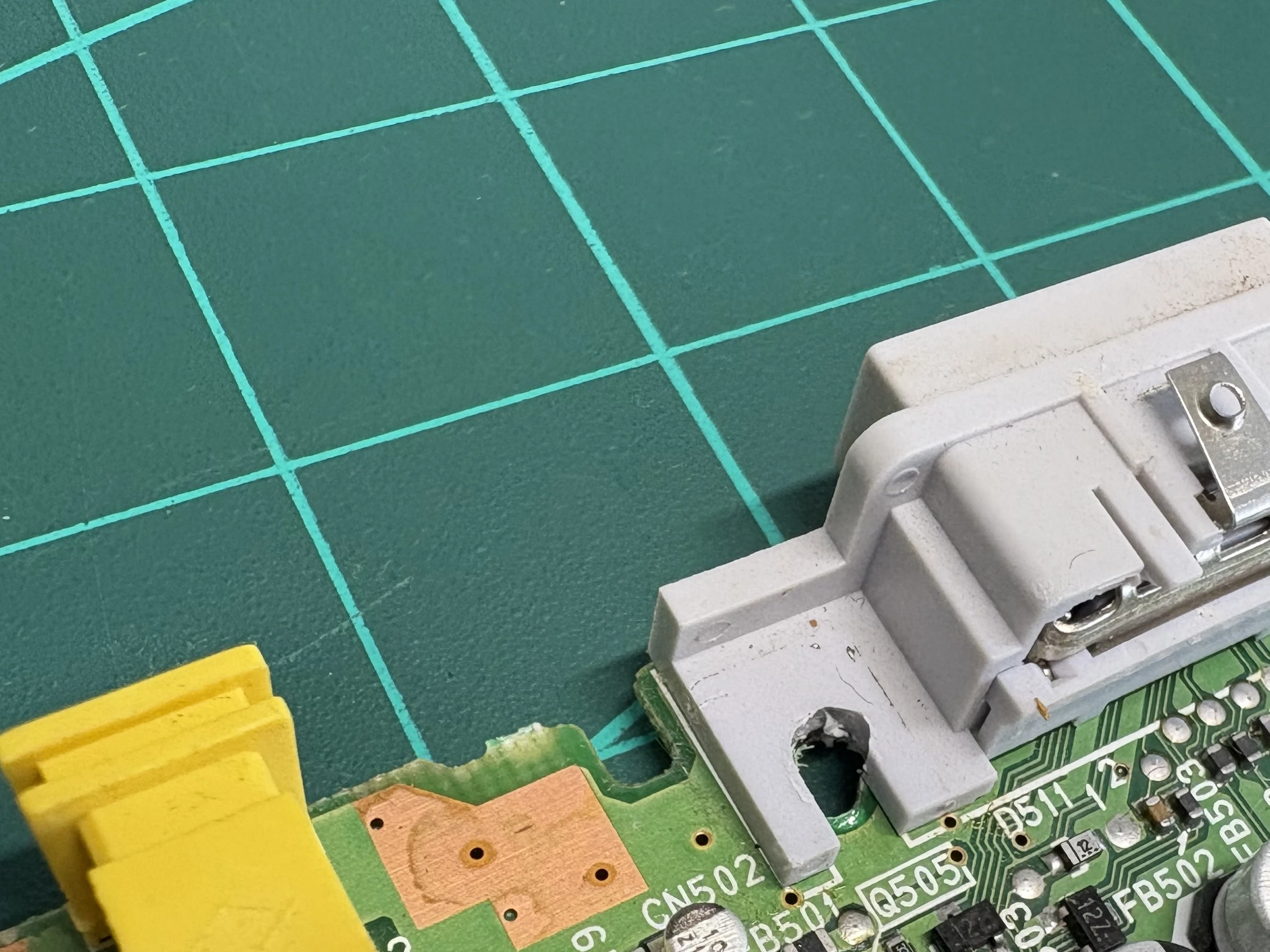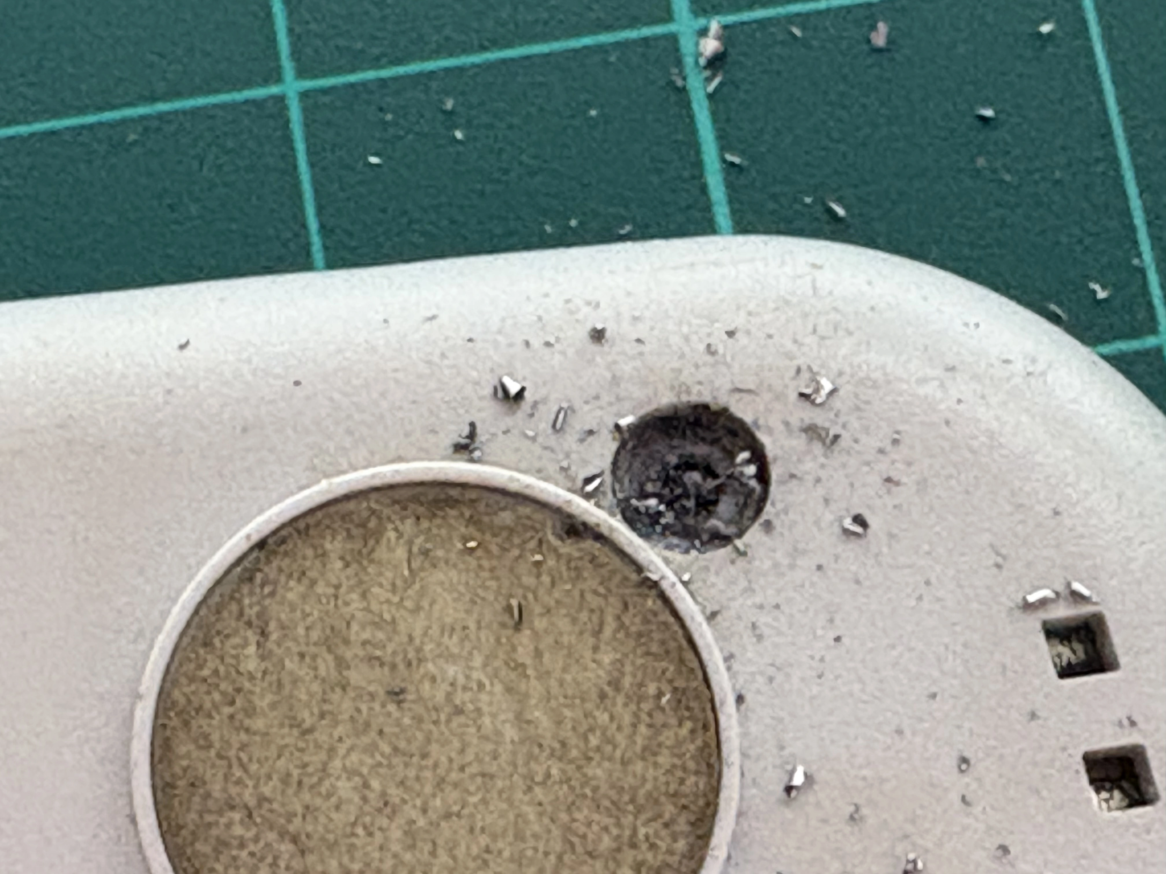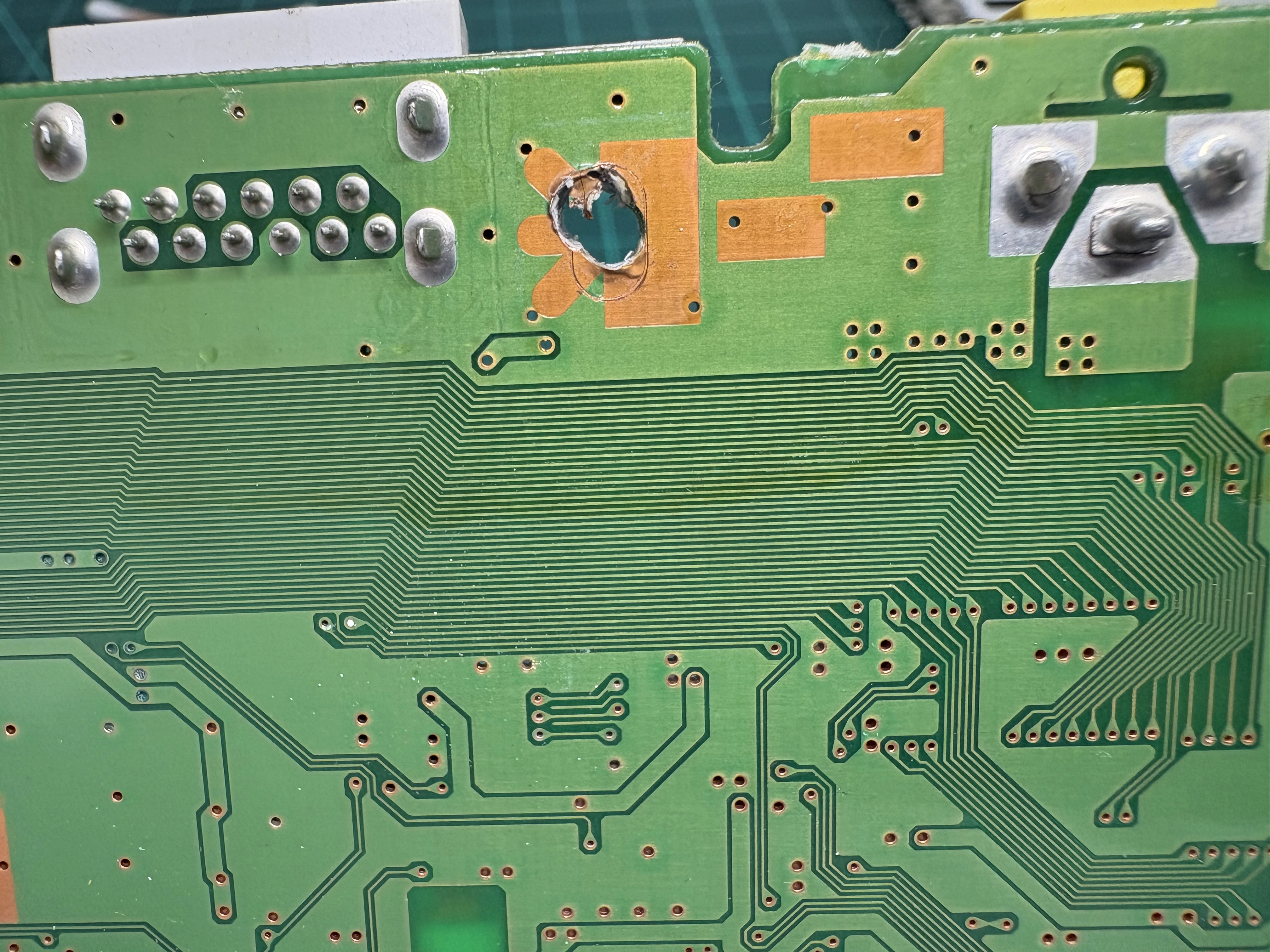 I wasn’t patient enough, and while drilling one of the screws, I applied too much pressure. My drill shaved off some PCB and a connector. Luckily, there were no copper traces in that area - just the ground plane - so the damage didn’t affect functionality. Next time, I’ll be more careful.